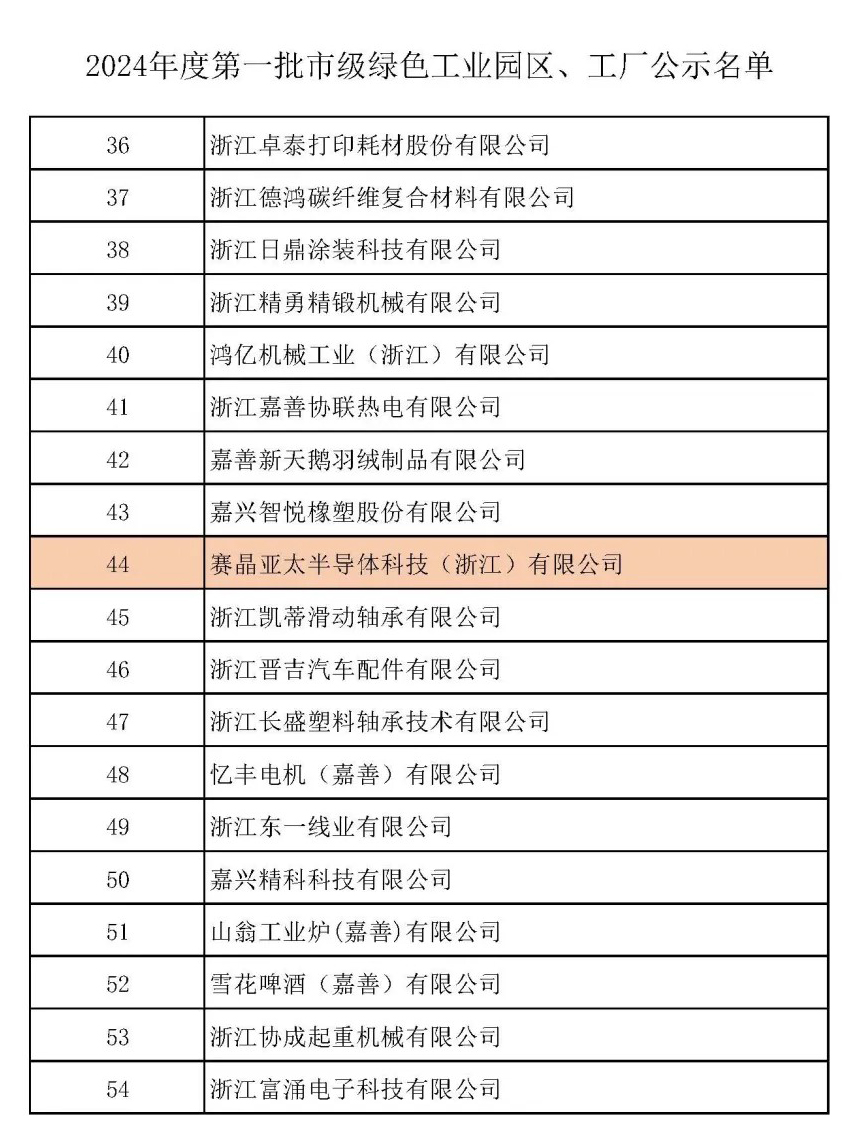 浙江省嘉興市經濟和信息化局日前公布了《2024年度第一批市級綠色工》的公示名單,賽晶科技子公司”賽晶半導體公司“榮譽上榜,獲評“綠色工廠”稱號。這是對賽晶堅持踐行“以科技創新,推動綠色能源發展”的認可與肯定,更是全方位彰顯了賽晶的“綠色智造實力”。