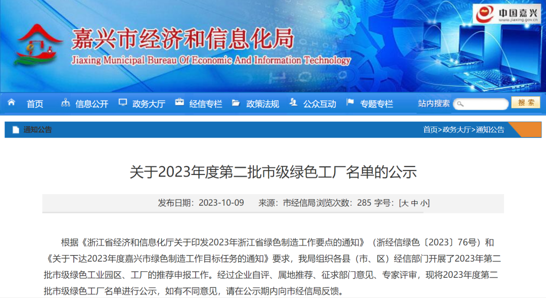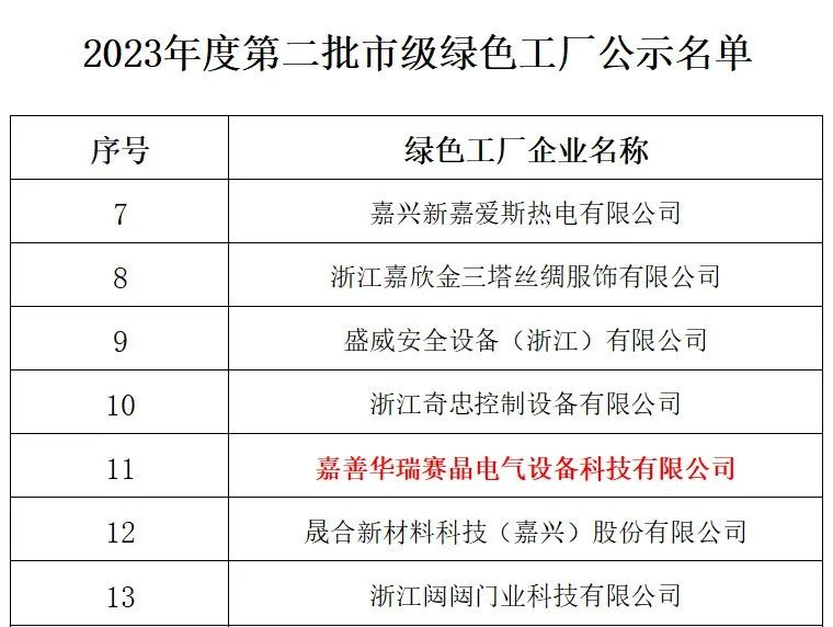 浙江省嘉興市經濟和信息化局日前公布了《2023年度第二批市級綠色工廠》的公示名單,賽晶科技成員企業 嘉善華瑞賽晶電氣設備科技有限公司榮譽上榜,獲評“綠色工廠”稱號。這是對賽晶堅持踐行“以科技創新,推動綠色能源發展”的認可與肯定,更是全方位彰顯了賽晶的“綠色智造實力”。