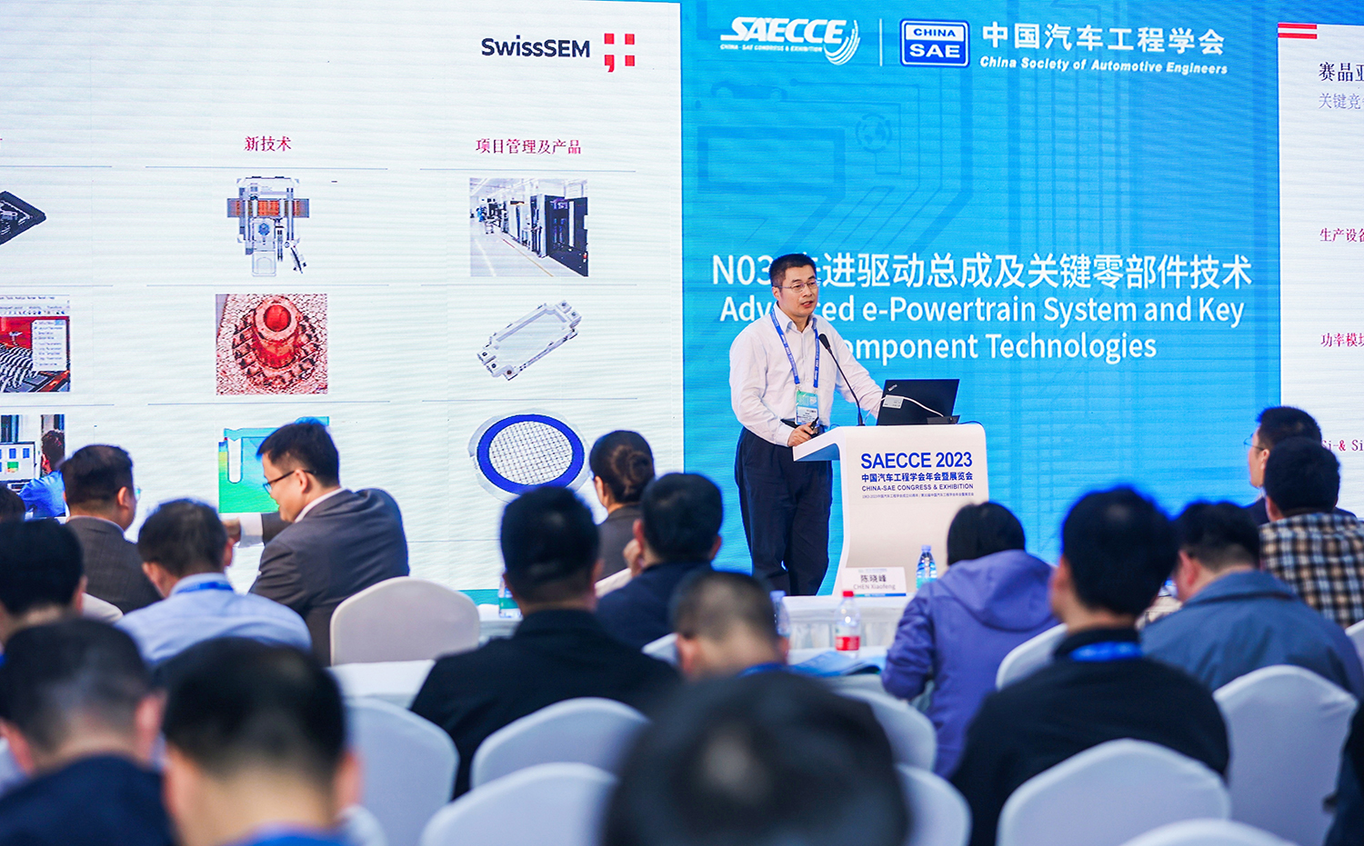 SAECCE 2023圍繞“科技引領(lǐng)汽車產(chǎn)業(yè)高質(zhì)量發(fā)展”的會(huì)議主題,涵蓋整車、新能源汽車技術(shù)、智能網(wǎng)聯(lián)汽車技術(shù)、測(cè)試與仿真技術(shù)、共性汽車技術(shù)等熱點(diǎn)領(lǐng)域。賽晶半導(dǎo)體展示了自主研發(fā)的車規(guī)級(jí)HEEV封裝SiC模塊,以及IGBT芯片及模塊等產(chǎn)品,并做主題報(bào)告《高效高可靠新型封裝車規(guī)級(jí)SiC功率模塊》。