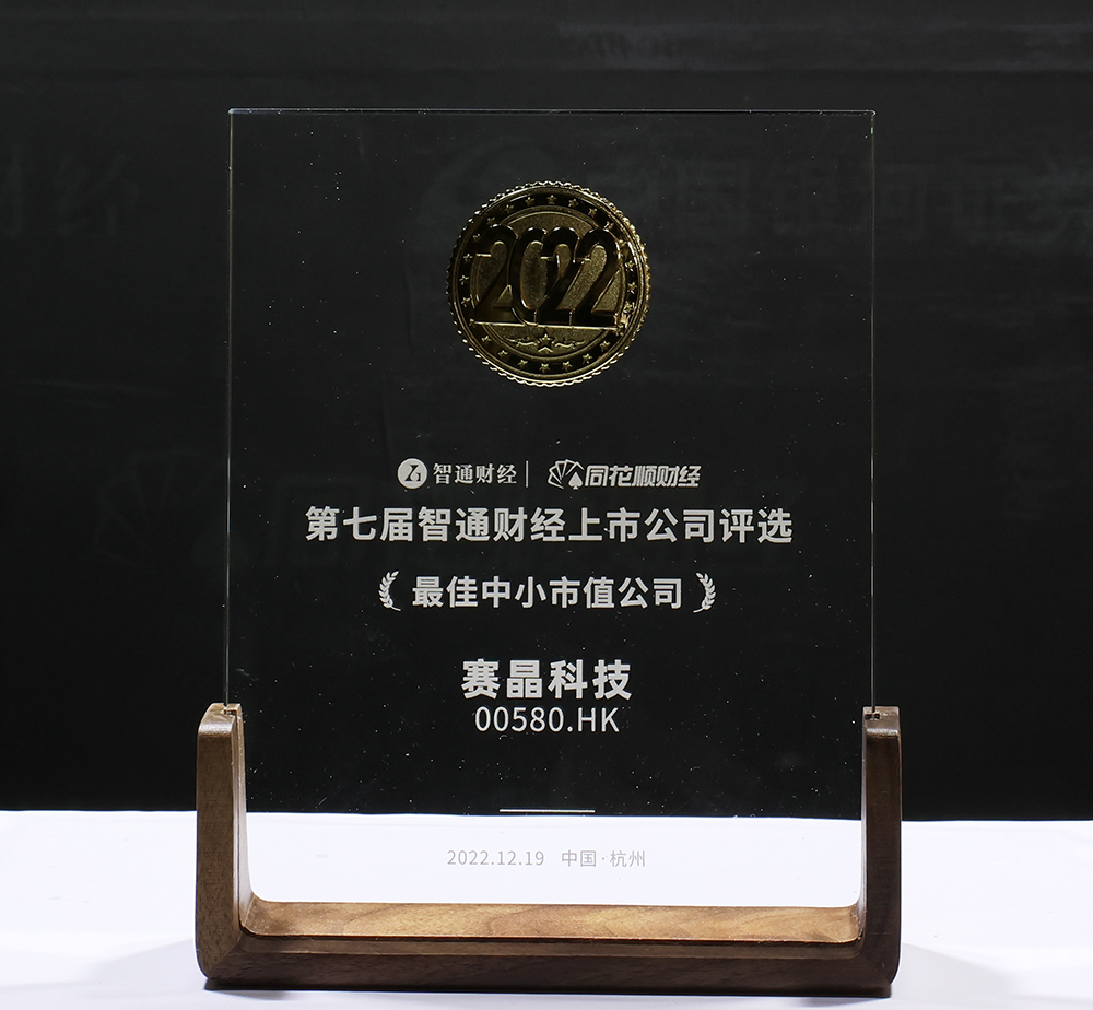 2022年12月19日,第七屆智通財經上市公司評選暨頒獎盛典在杭州隆重舉行,賽晶科技集團有限公司(「賽晶科技」或「公司」;股份代號:0580.HK)榮膺「最佳中小市值公司」獎,充分反映公司的經營戰略、業務發展和增長潛力獲得市場及投資界的廣泛認可。