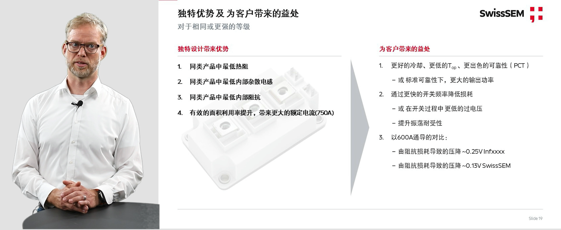 論壇上,賽晶科技瑞士子公司SwissSEM首席運(yùn)營(yíng)官Sven先生,通過(guò)視頻的方式發(fā)表主題報(bào)告“工業(yè)級(jí)和車規(guī)級(jí)IGBT的創(chuàng)新與突破”。介紹了賽晶i20 IGBT芯片組、ED封裝IGBT模塊的優(yōu)勢(shì)及特點(diǎn),并首次發(fā)布了面向新能源汽車領(lǐng)域的HEEV封裝SiC模塊,以及面向新能源發(fā)電和工業(yè)電控領(lǐng)域的ST封裝模塊。這是繼ED封裝IGBT模塊之后的又一力作,也是賽晶在工業(yè)級(jí)與車規(guī)級(jí)IGBT領(lǐng)域的又一次創(chuàng)新與突破。
