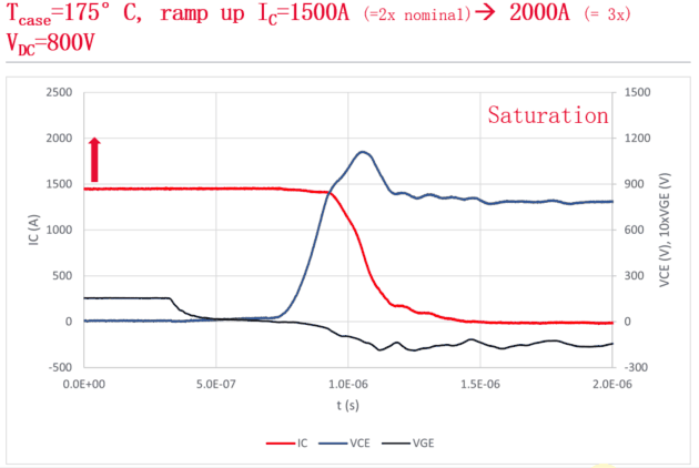 在最新測(cè)試中,以i20 IGBT芯片為核心的模塊產(chǎn)品,自1500A(模塊額定電流750A的2倍)開始,在超過2000A(接近額定電流的3倍)時(shí)仍然穩(wěn)定工作,表現(xiàn)出了極佳的安全性、耐用性。