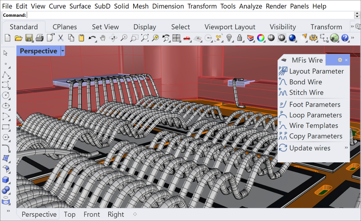 圖1:MFis Wire軟件:用于草繪ED型電源模塊的鍵合線布局