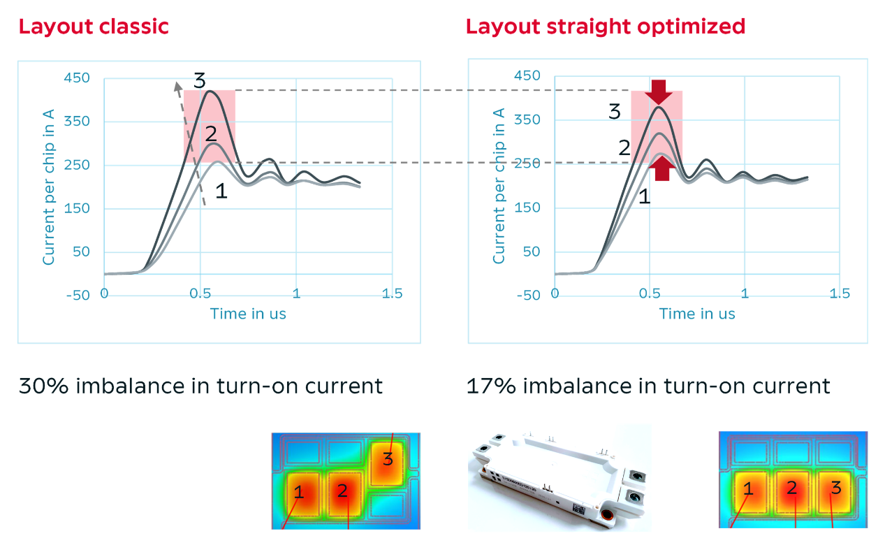 作為一家新興公司,對于SwissSEM Technologies AG而言,在短時(shí)間內(nèi)高質(zhì)量地將其首款產(chǎn)品推向市場至關(guān)重要。為了實(shí)現(xiàn)出色的器件性能,電磁和熱優(yōu)化至關(guān)重要。行業(yè)標(biāo)準(zhǔn)的17毫米高、62 x 152毫米ED型IGBT模塊,其冗長的設(shè)計(jì)對IGBT之間的內(nèi)部電流均流提出了特殊的挑戰(zhàn)。大多數(shù)經(jīng)典布局或多或少都會(huì)面臨芯片之間電流不平衡的問題,我們的目標(biāo)是推出一種具有最佳電流一致性的模塊,以充分發(fā)揮我們最新的IGBT i20這一代產(chǎn)品的優(yōu)勢。
