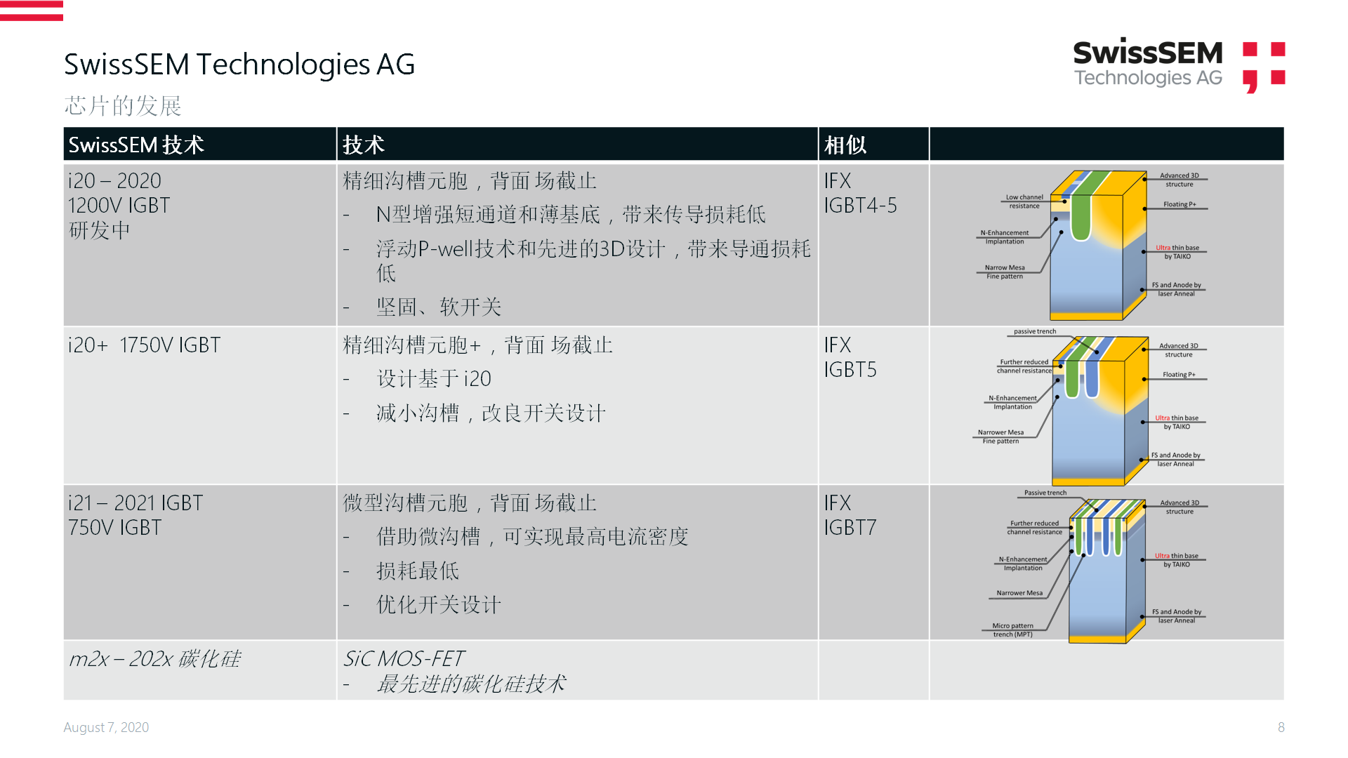 Raffael先生通過名為“新型IGBT—電能驅動及可再生能源”的主題報告,詳細介紹了SwissSEM及其芯片與模塊技術,在電動汽車和可再生能源領域的優(yōu)勢和應用前景。首次公開了研發(fā)路線圖,以及IGBT芯片技術的命名方式和技術特點。