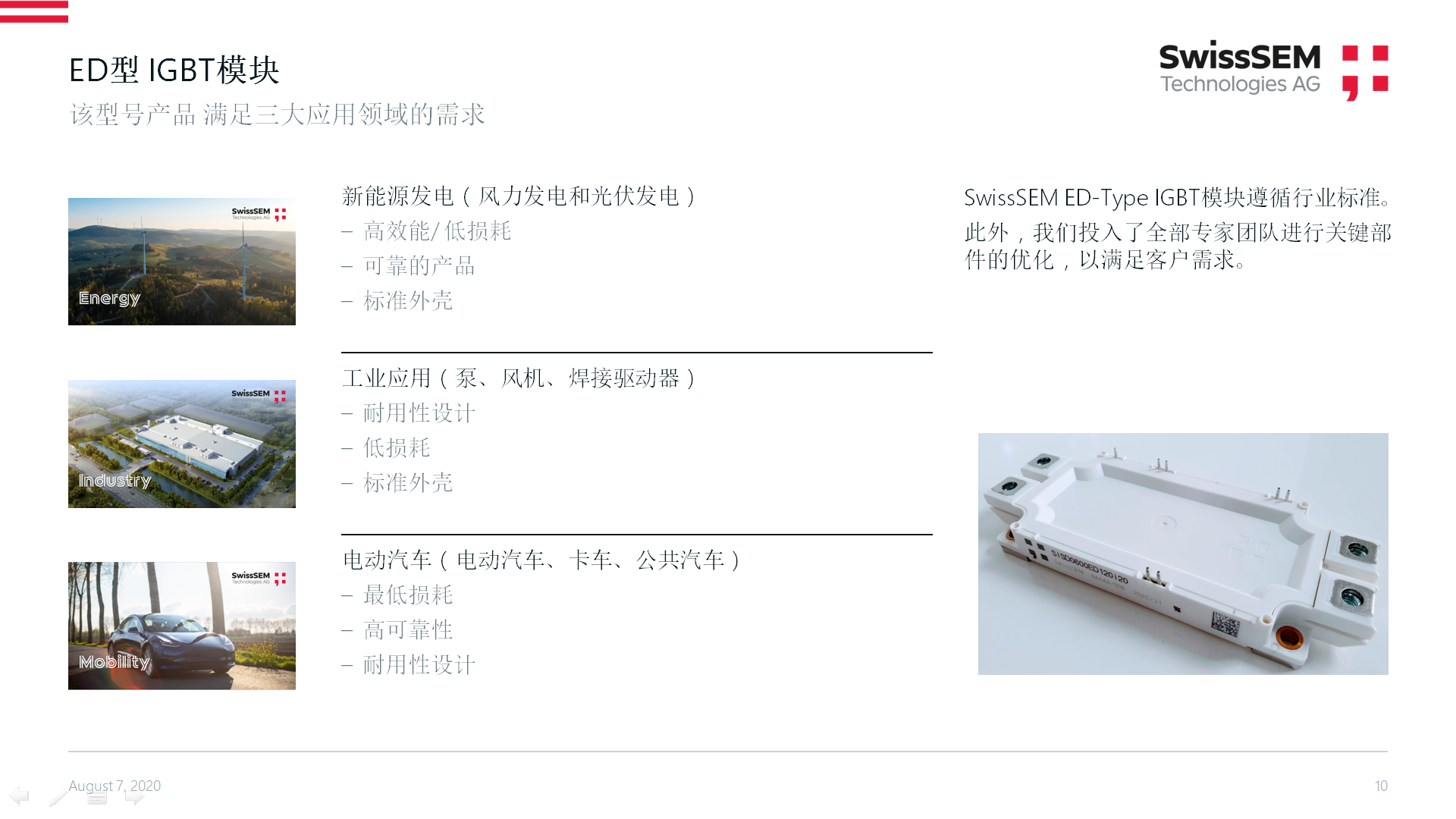 此外,還詳細介紹了兩款IGBT模塊技術,ED-Type 和EV-Type。ED-Type模塊,是可再生能源、工業(yè)變流、專用電動汽車的通用型IGBT模塊,具有低能耗、高可靠性、高耐用性等優(yōu)點。賽晶即將推出的首款IGBT模塊產品,即是一款1200V/600A型號的ED-Type模塊。