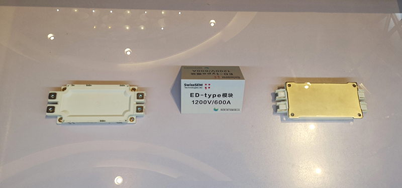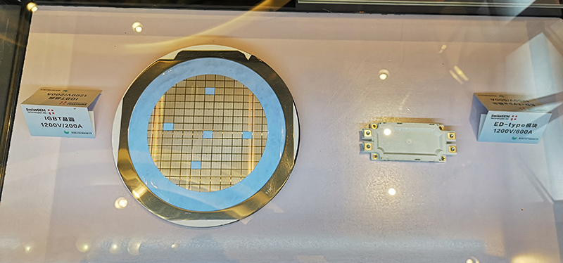 論壇同期的展覽展示上,賽晶展出了“1200V/600A”ED-Type模塊和“1200V/200A”IGBT晶圓的樣品。