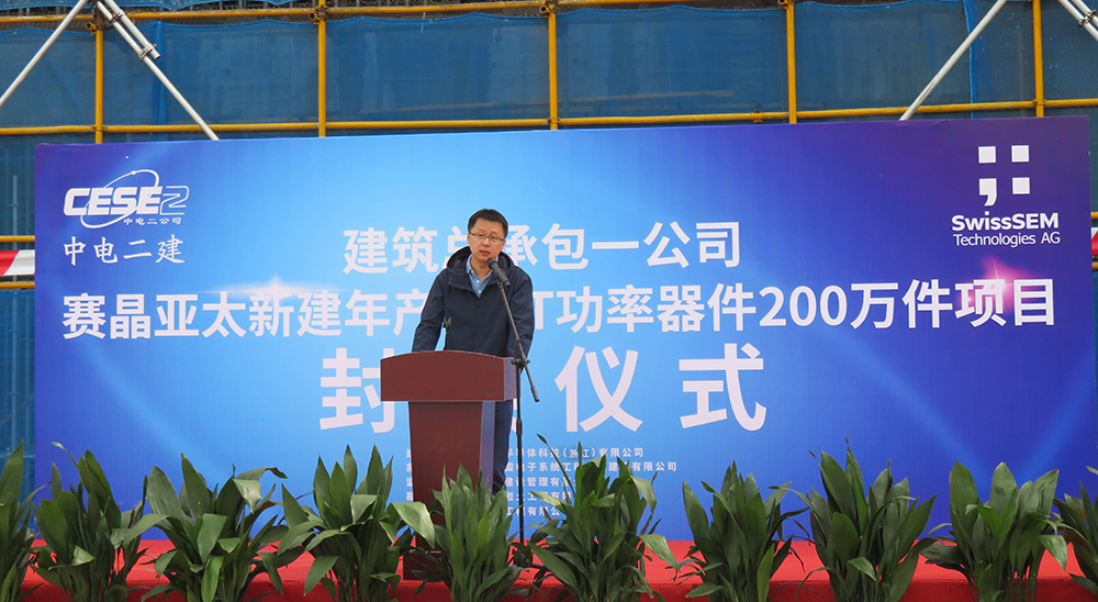 10月13日,“賽晶亞太新建年產(chǎn)IGBT功率器件200萬件項目”一期封頂儀式隆重舉行,賽晶電力電子集團(tuán)有限公司(以下簡稱:賽晶集團(tuán))旗下子公司賽晶亞太半導(dǎo)體科技(浙江)有限公司(以下簡稱:賽晶半導(dǎo)體)總經(jīng)理張強出席儀式并宣布封頂。賽晶IGBT項目業(yè)主代表唐寶成,監(jiān)理單位浙江富力建設(shè)管理有限公司總監(jiān)劉如新,施工單位中國電子系統(tǒng)工程第二建設(shè)有限公司高級副總經(jīng)理惠文榮,中國電子系統(tǒng)工程第二建設(shè)有限公司一分公司總經(jīng)理楊超,中國電子系統(tǒng)工程第二建設(shè)有限公司建筑總承包一分公司總經(jīng)理李洪偉等多位領(lǐng)導(dǎo)出席了封頂儀式。各參建單位代表等百余人參加了封頂儀式。