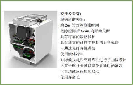 船用固態直流斷路器,廣泛應用于船用直流電力系統中,因其超快的保護動作,能夠在系統發生短路故障時快速關斷短路電流(20微秒),是直流斷路器領域革命性進步,極大的降低了電力系統和設備的安全風險。目前賽晶集團的船用直流斷路器已有1kV 200A、500A和1250A可以預定,其中500A和1250A的產品已經通過挪威船級社(DNV GL)認證,200A風冷版本可以用于實驗室測試。