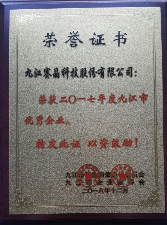 12月14日,由九江市工業(yè)和信息化委員會(huì)及九江市企業(yè)家協(xié)會(huì)聯(lián)合主辦的“2018年度九江市企業(yè)家協(xié)會(huì)年會(huì)暨表彰大會(huì)”在九江賓館隆重召開(kāi)。大會(huì)表彰了2017年度九江市優(yōu)秀企業(yè)和2017年度九江市優(yōu)秀廠長(zhǎng)(經(jīng)理),發(fā)布了2017年九江工業(yè)企業(yè)30強(qiáng)名單。九江賽晶科技股份有限公司(以下簡(jiǎn)稱九江賽晶)榮獲“2017年度九江市優(yōu)秀企業(yè)”稱號(hào)。
