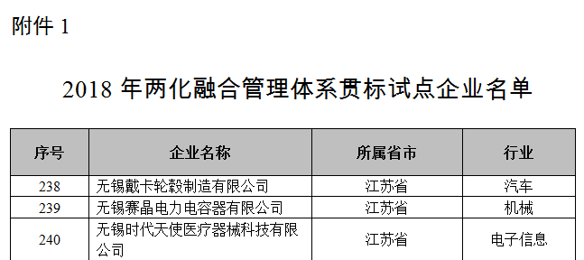 2018年9月,中華人民共和國工業和信息化部辦公廳公布了2018年兩化融合管理體系貫標試點企業名單,無錫賽晶電力電容器有限公司(以下簡稱:無錫賽晶公司)成功入選。