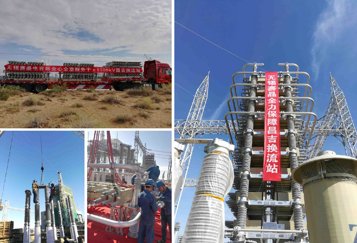 2017年10月10日,賽晶集團下屬子公司無錫賽晶電力電容器有限公司(以下簡稱無錫賽晶)中標的特高壓直流輸電±1100kV昌吉換流站項目濾波器組電容器順利安裝完成。