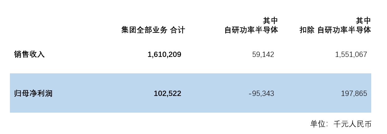 本集團歸母凈利潤1.03億元人民幣;不計自研功率半導體業務的情況下,歸母凈利潤達到1.98億元人民幣。
