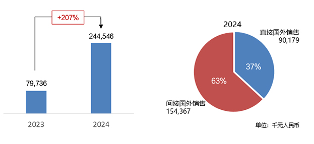 在全球能源結構加速轉型的浪潮下,本集團積極布局海外市場。根據國際能源署(IEA)《電力2025》報告顯示,由于工業用電、空調等居民用電、電動汽車,以及人工智能等新興產業用電的全面上升。2024年全球用電量增長4.3%,且未來三年將保持年增長4%高速增長,為中國電力裝備企業走向國外市場帶來了絕佳的市場機遇。本集團積極踐行“走出去”戰略,著重加強國外市場的業務推廣力度,取得顯著成效。2024年國內外子公司直接面向國外客戶的銷售收入(簡稱“國外直接銷售收入”)達到90,179千元人民幣,供給國內客戶并最終用于國外市場的銷售收入(簡稱“國外間接銷售收入”)達到了154,367千元人民幣,兩項合計244,546千元人民幣,同比增長207%。國外銷售總收入占本集團銷售收入的比重已超過15%,成為了業務增長的一個重要動力。