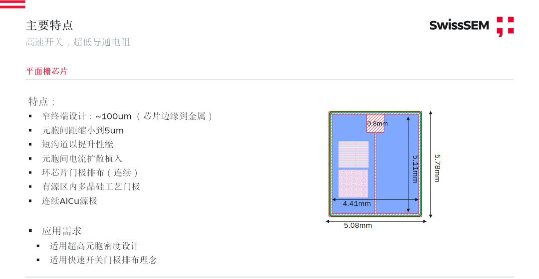 賽晶SiC MOSFET芯片,采用多項行業(yè)領(lǐng)先的特色設(shè)計和工藝,具有高速開關(guān)、超低導(dǎo)通電阻,以及高可靠性和良好的溫度特性。