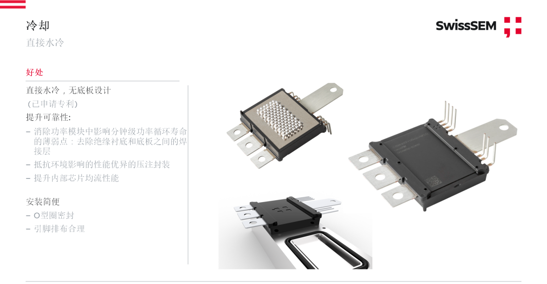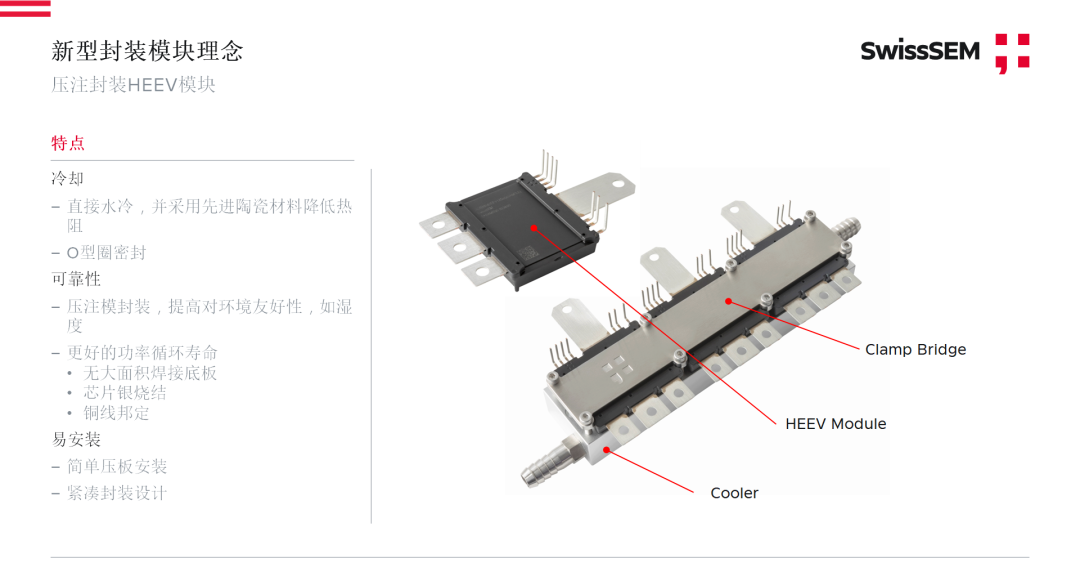 HEEV封裝SiC模塊具有低雜感、體積小等特點,采用壓注封裝且一改經(jīng)典串聯(lián)水冷模式采用并聯(lián)無底板設(shè)計大大提高了其散熱效率,能夠?qū)iC芯片的性能得到更充分的發(fā)揮,助力客戶實現(xiàn)高達(dá)250kW最緊湊電驅(qū)的實現(xiàn)。